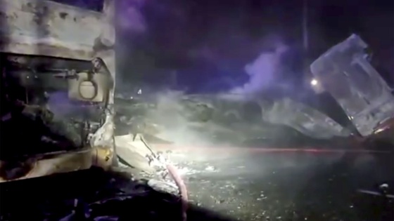 ДТП произошло в районе станицы Старокорсунской под Краснодаром на автодороге Темрюк - Краснодар - граница Ставропольского края. По предварительным данным, водитель грузового автомобиля выехал на полосу встречного движения, где допустил столкновение с пассажирским автобусом, в результате чего произошло возгорание транспортных средств.