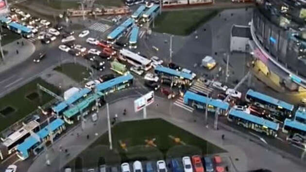 Появилось видео с гигантской пробкой на Комендантской площади в Петербурге