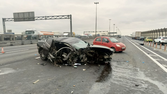 Автомобиль столкнулся с тремя машинами на Кольцевой автодороге в Санкт-Петербурге, три человека госпитализированы.