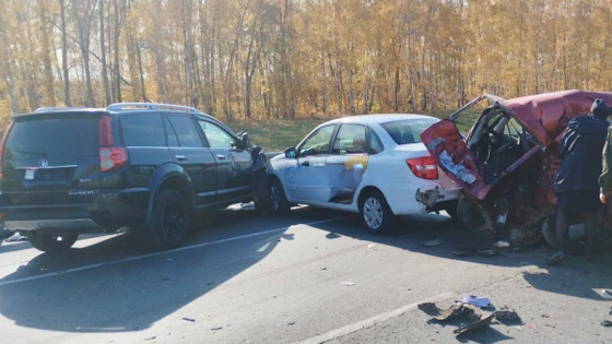 Как сообщили в региональной прокуратуре, мужчина за рулем LADA Kalina потерял управление и выехал на встречку. Там он столкнулся с легковушкой Hover, а та в свою очередь врезалась в автомобиль такси. На месте происшествия погиб водитель "Калины" и младенец. Медики увезли в больницу еще двух пострадавших - пассажира из первой легковушки и иномарки. Женщина из отечественной машины, предположительно, мать ребенка, скончалась в карете скорой помощи, пишет РИА Новости. Расследование аварии на контроле у надзорных органов.