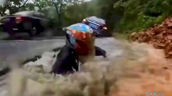 Мотоциклист неожиданно принял душ в сточной канаве