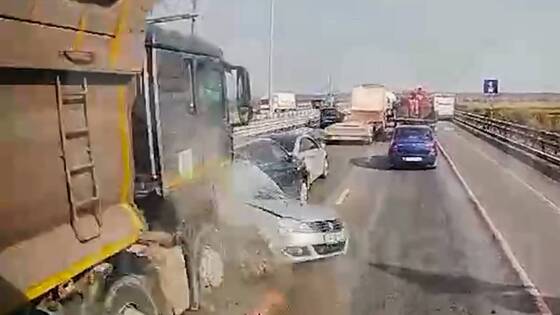 В сети появились кадры момента смертельного ДТП на трассе М-2 «Крым» в Московской области, где столкнулись семь легковых автомобилей и четыре грузовика. Их публикует Mash в Telegram-канале.