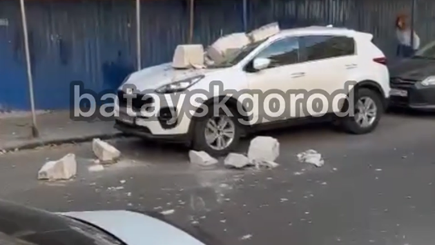 В Ростове на автомобиль, припаркованный рядом со стройкой, упали газоблоки