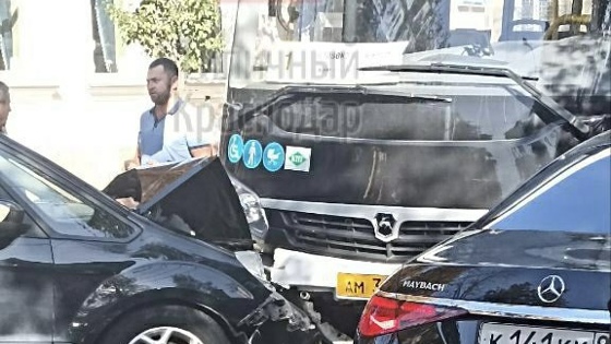 Маршрутка выехала на встречку и врезалась в иномарку в центре Краснодара