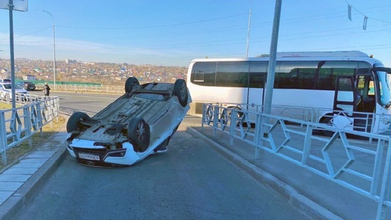 Легковой автомобиль опрокинулся. Его водитель и пассажирка обратились к медикам за помощью.
