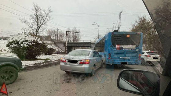 В Новокузнецке днем 16 октября произошла авария на кольце "Каскада" рядом с железнодорожным мостом. Участниками ДТП стали автобус, следующий по маршруту № 68, и легковая машина.