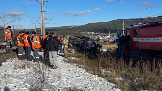 Под Иркутском пассажирский поезд столкнулся с микроавтобусом