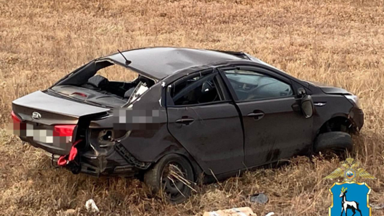В Самарской области в улетевшей в кювет Kia Rio пострадали три человека