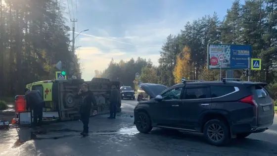 Под Петербургом в результате ДТП перевернулась машина скорой помощи
