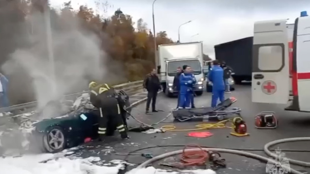Авария с участием легкового авто и «Газели» произошла на 101 километре МКАД утром в пятницу, 25 октября. В результате столкновения легковушка загорелась. Последствия жесткого ДТП попали на видео, опубликованное в Telegram-канале МЧС России.