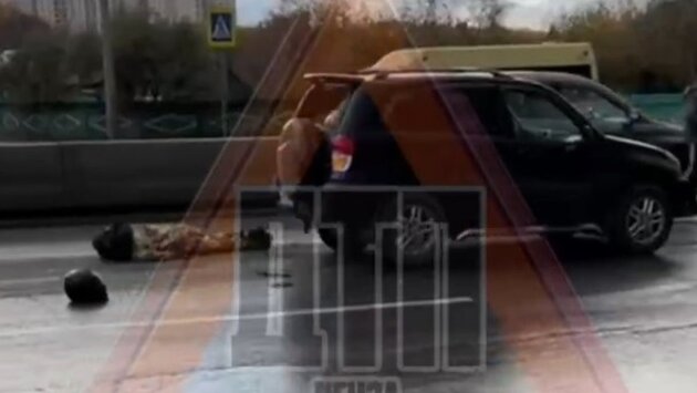 На кадрах, опубликованных в Сети, видно, что на проезжей части неподвижно лежит человек, а неподалеку - повалившийся на асфальт мотоцикл. Рядом стоят несколько автомобилей.