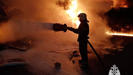 Стена огня: мощный пожар начался после столкновения грузовиков в Тверской области