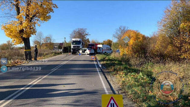 Под Зеленоградском водитель легковушки выехал на встречку и врезался в тягач