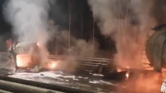 Проезд на данном участке трассы в Тверской области пришлось перекрыть из-за столкновения двух грузовиков. Инцидент произошел вблизи деревни Заболотье. В аварию попали автоцистерна с битумом и грузовик с коробками. Оба транспортных средства после столкновения воспламенились.