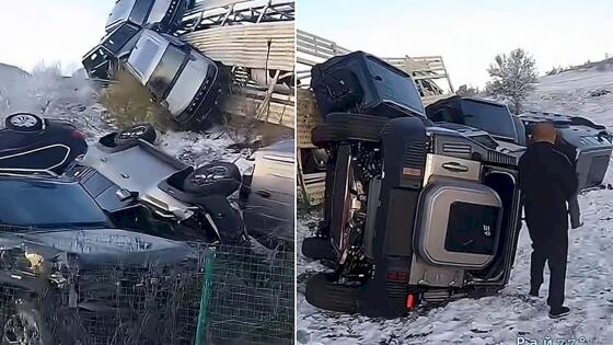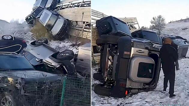 Судя по кадрам видеозаписи, распространённой в китайских соцсетях, водитель автовоза не справился с управлением автоплатформы, которая опрокинулась в кювет.