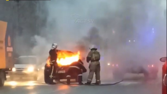 Пламя объяло ехавшую по новосибирской дороге иномарку. Владелец машины и очевидцы попытались справиться с огнем, однако это удалось только прибывшим на место пожарным.
