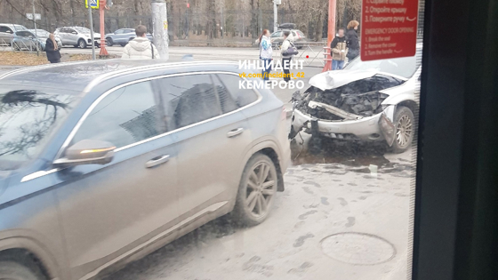 Собралась пробка: иномарки жестко столкнулись на проспекте Ленина в Кемерове
