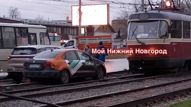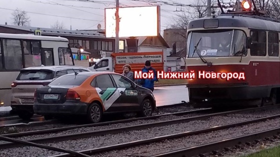 Автомобиль каршеринга вылетел на трамвайные пути в Нижнем Новгороде