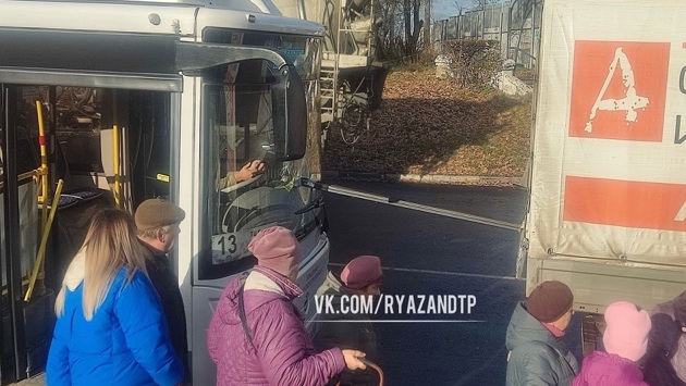 Металлический штырь воткнулся в лобовое стекло автобуса в Рязани