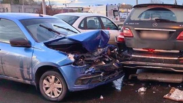 В 7:02 37-летний водитель Lada Granta в районе дома №32б на Заводском шоссе врезался в Merсedes под управлением 65-летнего мужчины. Иномарку отбросило на Lada Granta и Toyota Land Cruiser. После этого внедорожник столкнулся с Lada Granta.