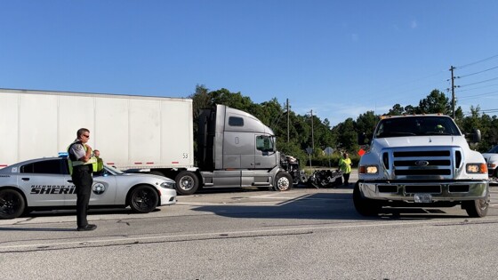 Полиция штата ограничила движение на автомагистрали во время установки новых линий электропередачи вдоль дороги, из-за чего образовался затор. Как только движение возобновили, в затор влетела фура, водитель которой не увидел препятствие вовремя.
