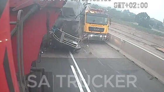 В ЮАР попало на видео, как фуру разорвало между двух грузовиков