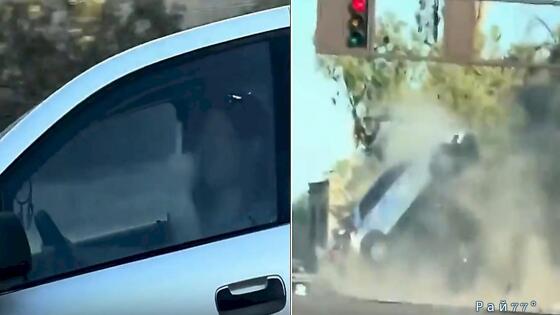 Житель города Темпе (штат Аризона, США), прокладывая маршрут в своём автомобиле, запечатлел момент расплаты, настигшей другого участника дорожного движения, совершившего наезд на его транспортное средство.