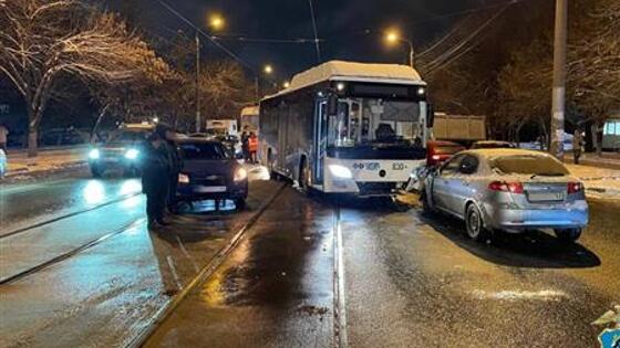 В 18:05 38-летний водитель Chevrolet Cruze напротив дома № 53 по ул. Аэродромной не уступил дорогу и столкнулся с автобусом. Водитель автобуса пытался уйти от удара и в итоге врезался в Chevrolet Lacetti.