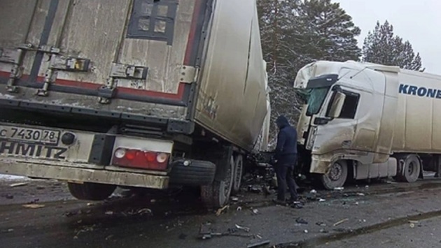 Два человека погибли в аварии с тремя фурами и одним легковым автомобилем в Челябинской области