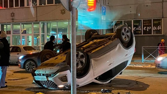 По словам очевидцев, водитель автомобиля наехал на островок безопасности на перекрёстке улиц Фрунзе и Ольги Жилиной, в результате машина подлетела в воздух и упала на крышу.