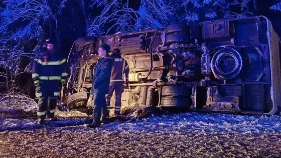 По предварительной версии, водитель автобуса не справился с управлением из-за сложной погодной ситуации. Машину опрокинуло.