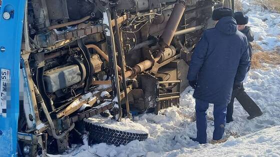 В ведомстве уточнили, что авария произошла на дороге Бакбасар — Азово — Шербакуль — Полтавка. По предварительным данным, водитель автобуса на нерегулируемом перекрестке не пропустил грузовик и столкнулся с ним. После этого общественный транспорт перевернулся, в момент ДТП в салоне находились 12 пассажиров.