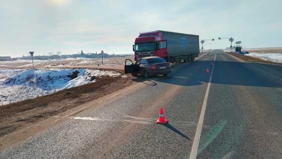 В Оренбуржье при столкновении легковушки и большегруза пострадала женщина