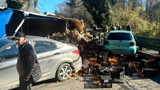 Фура засыпала трассу мандаринами и устроила ДТП в Сочи