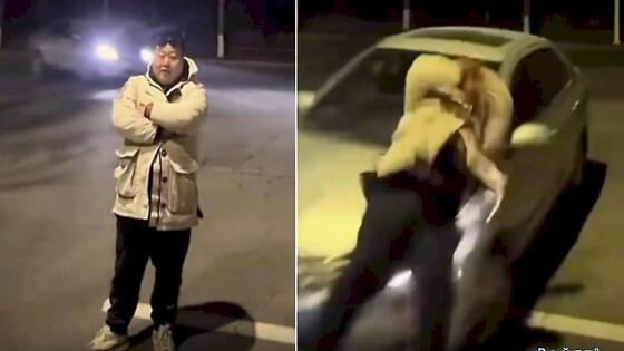 Тучный китаец переоценил навыки вождения автовладельца во время селфи