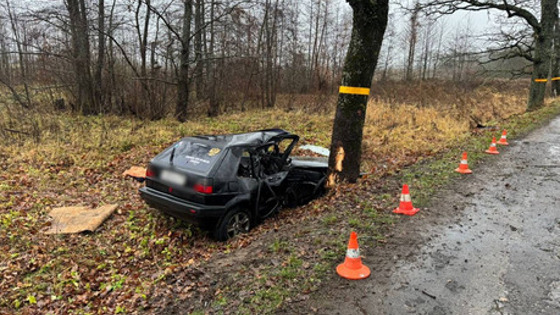 В Озёрском районе легковушка вылетела с трассы в дерево.