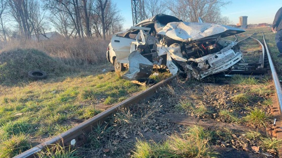 Поезд на большой скорости снес автомобиль, который выехал на пути