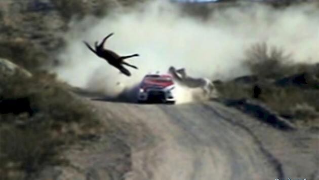Водитель легковушки не успел притормозить и на полном ходу сбил животное, которое пролетев несколько метров, опрокинуло пешехода.