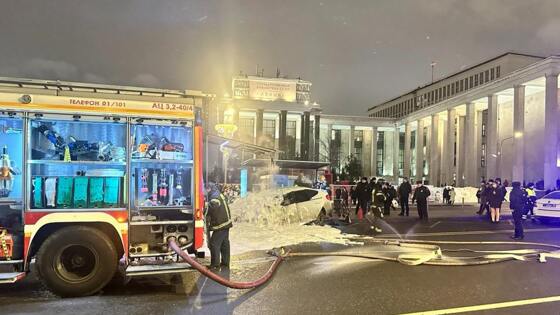 Автомобиль столкнулся с автобусом и загорелся недалеко от Кремля