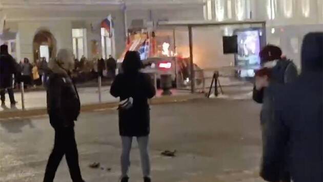 Недалеко от Кремля водитель BMW сгорел заживо после столкновения с автобусом