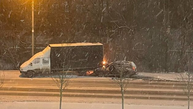 На ул. Измайлова иномарка врезалась в «Газель» и загорелась