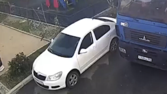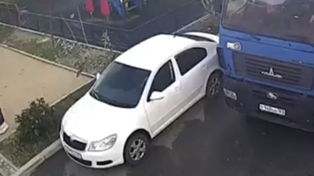 На видео попало, как фура разрушила жилой двор и уехала в Севастополе
