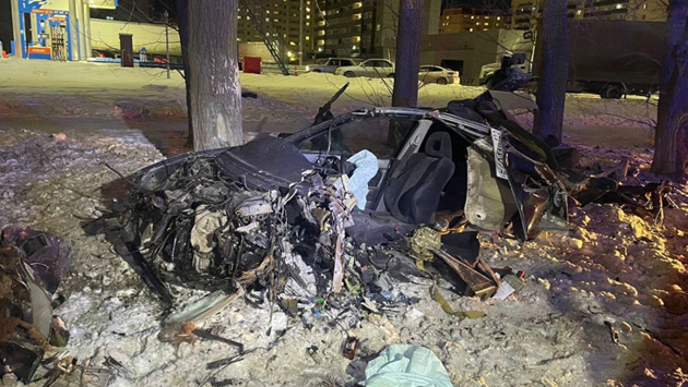Судя по кадрам с места ДТП, удар был сильным. Иномарку буквально разорвало на части.