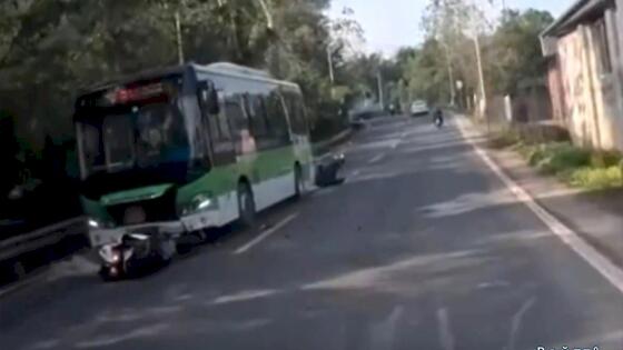Мотоциклист, благодаря реакции, чудом избежал столкновения с автобусом