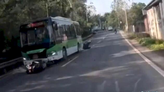 Мотоциклист не справился с управлением своего байка и в самый последний момент успел сгруппироваться и избежать столкновения с двигавшимся во встречном направлении рейсовым автобусом.