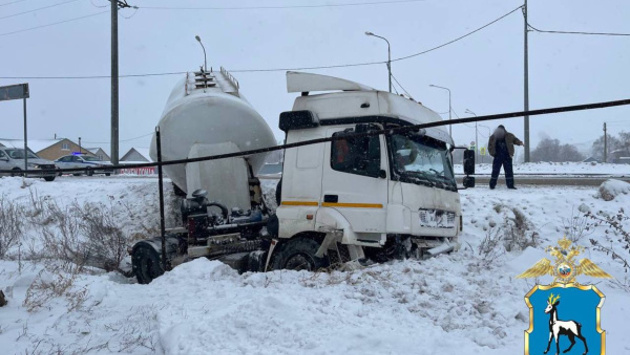 В Самарской области 22 декабря КамАЗ улетел в кювет