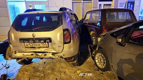 Массовая авария произошла в Новосибирской области. В рабочем поселке Маслянино лихач зацепил сразу шесть автомобилей, все они стояли на парковке.