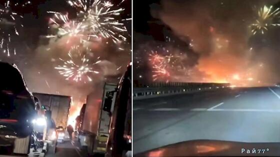 Грузовик с фейерверками попал в ДТП и подорвался на оживлённой магистрали