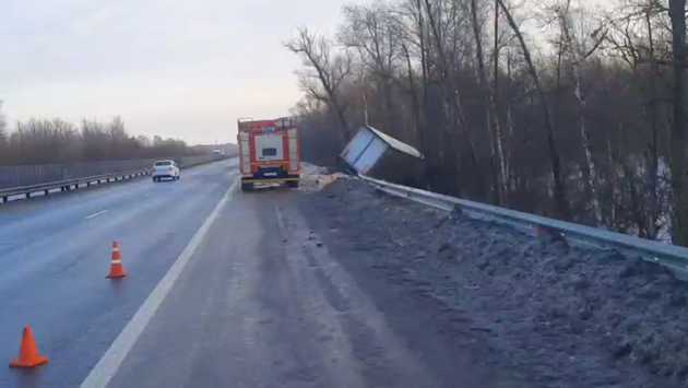 Большегруз улетел в кювет на трассе М-7 в Нижегородской области. Об этом сообщили в УГИБДД по региону.