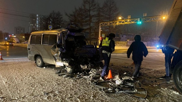 Вечером 8 января на улице Фронтовых Бригад в Екатеринбурге произошло столкновение грузовика «КАМАЗ» и легкового автомобиля Toyota Hiace.